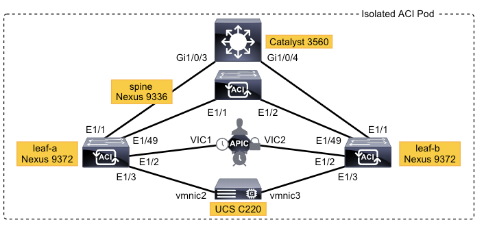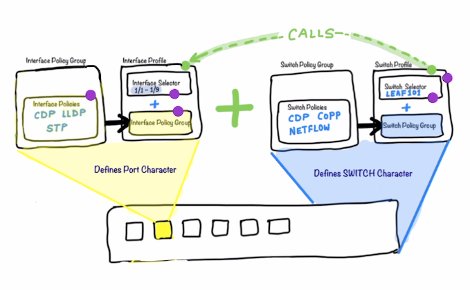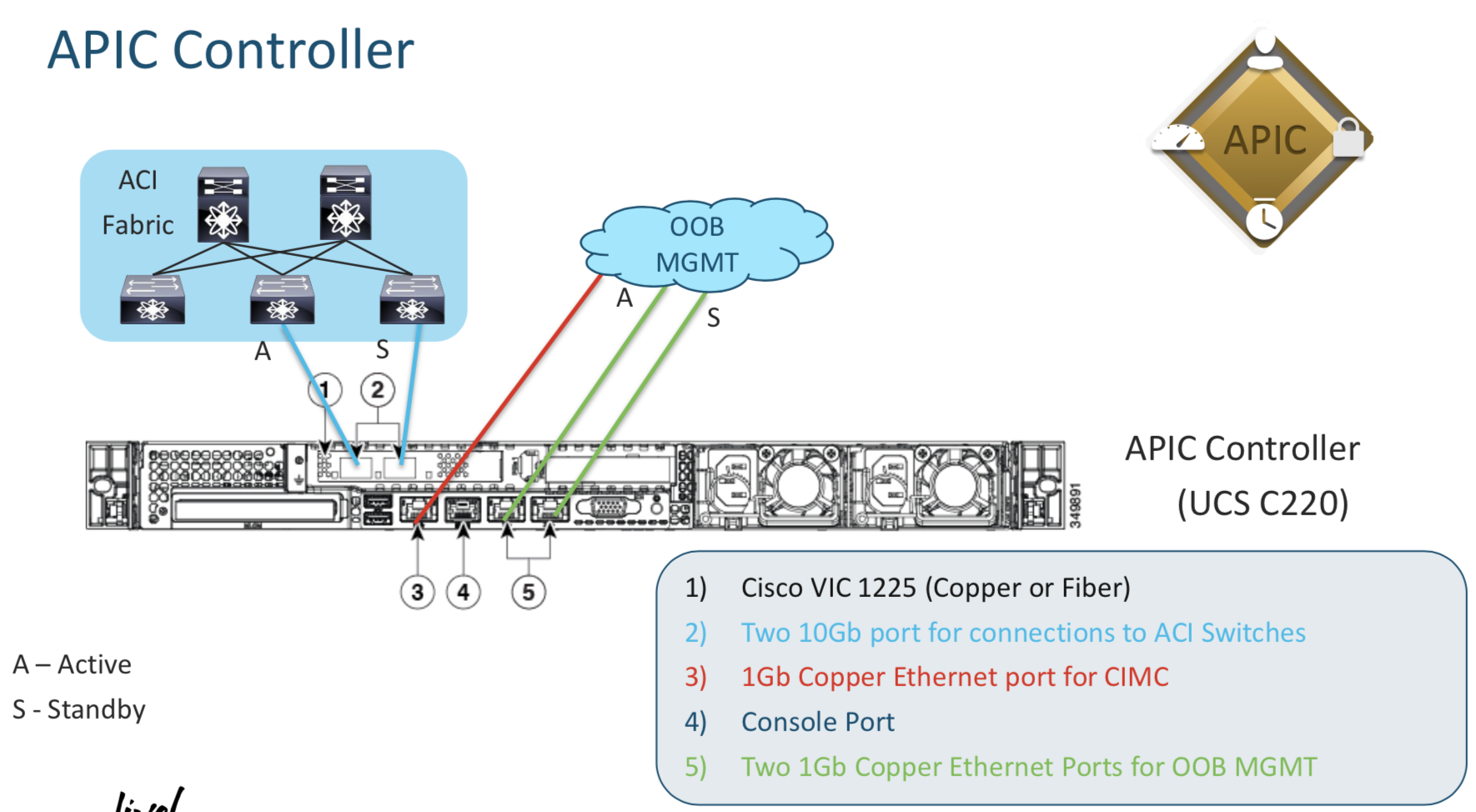 - The Green Ones are the interfaces on which the Managment Interface of the APIC resides.