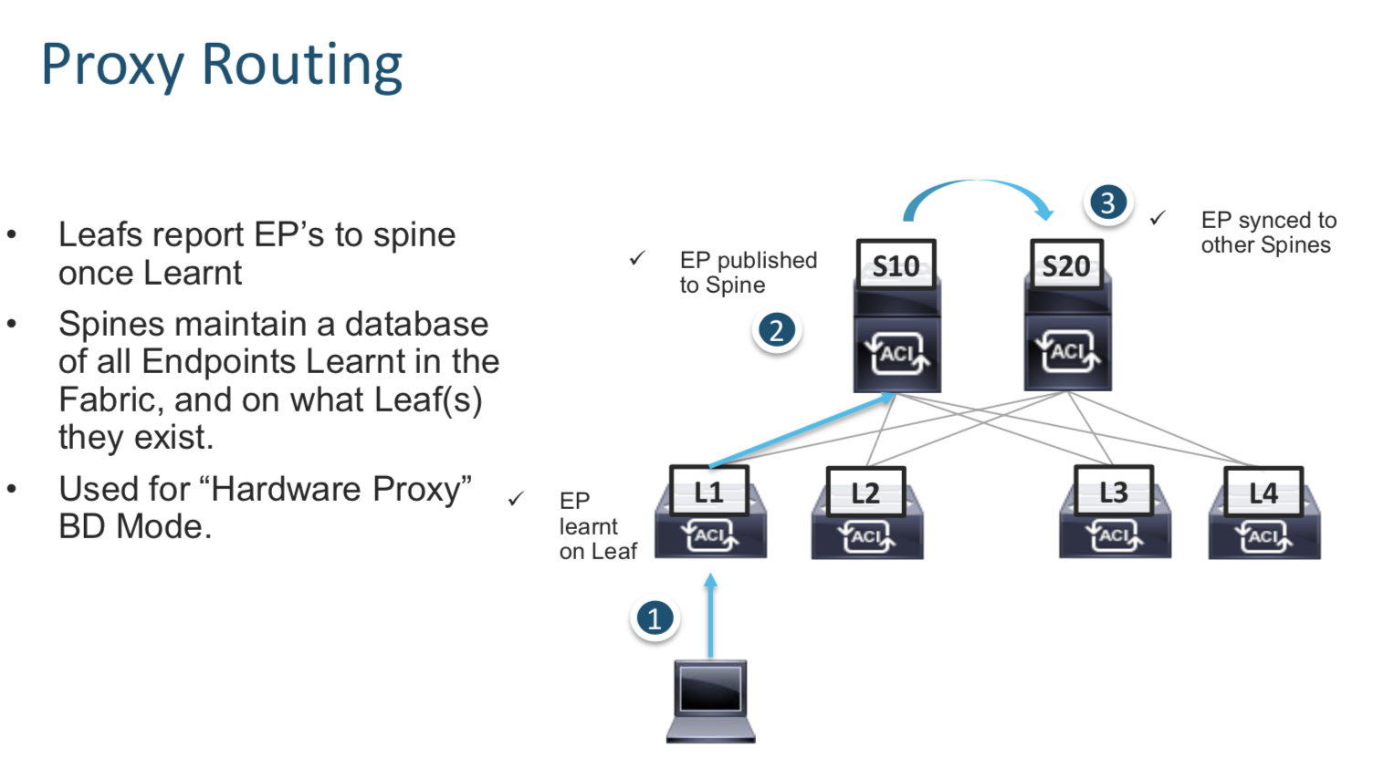 When Leafs do not know a path to a remote endpoint , they can query the Spine for the same.