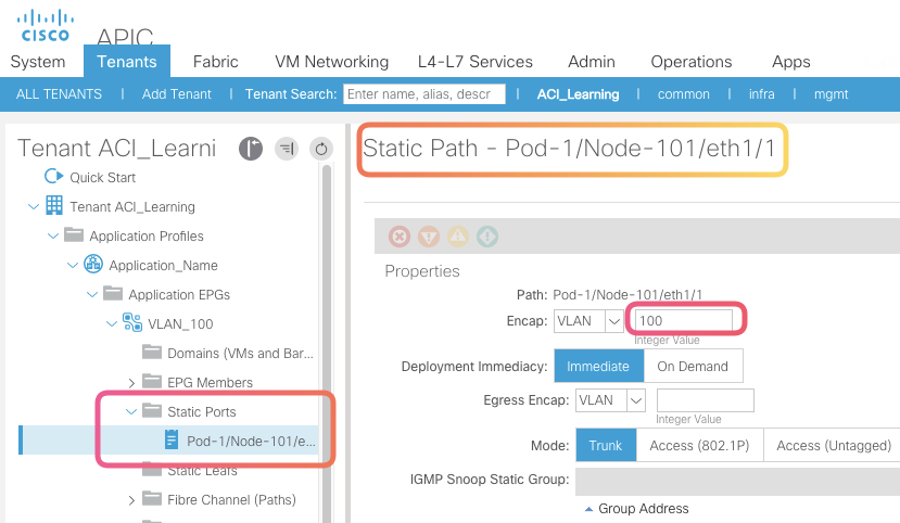 With the above binding configured , you can extend your legacy VLAN configuration to ACI and vice versa