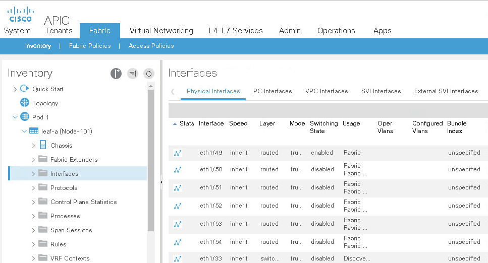 Fabric: Cisco ACI inventory and configuration point for intra-fabric and access policies
