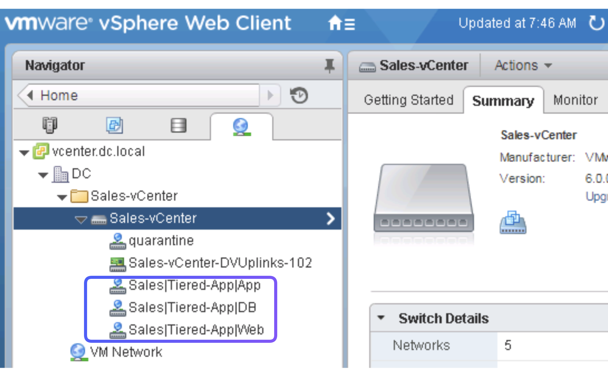 - Step 7. and Step 8 The EPGs are auto mapped to VMWare Port Groups and are created in VMWare