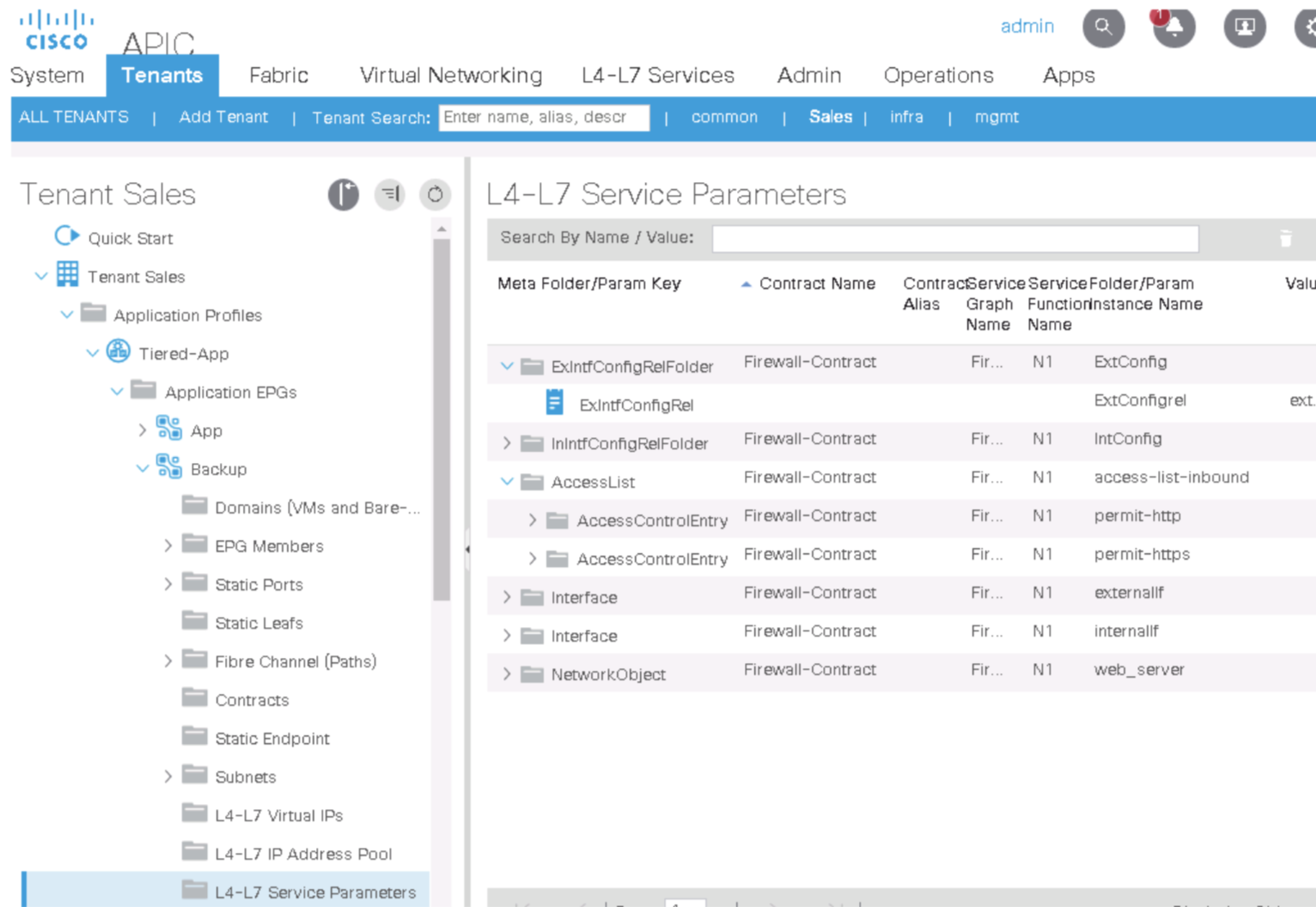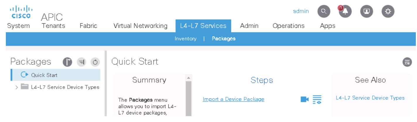 L4-L7 Services: Package repository for upper-layer service elements, such as firewalls or load balancers, that can be inserted into the fabric