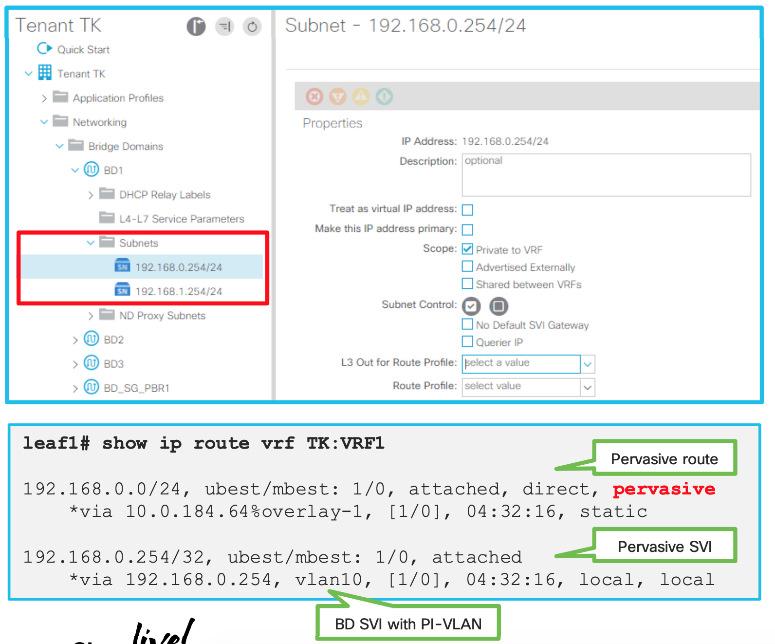 All these subnets are defined on the Bridge Domain Bridge Domain is your VXLAN