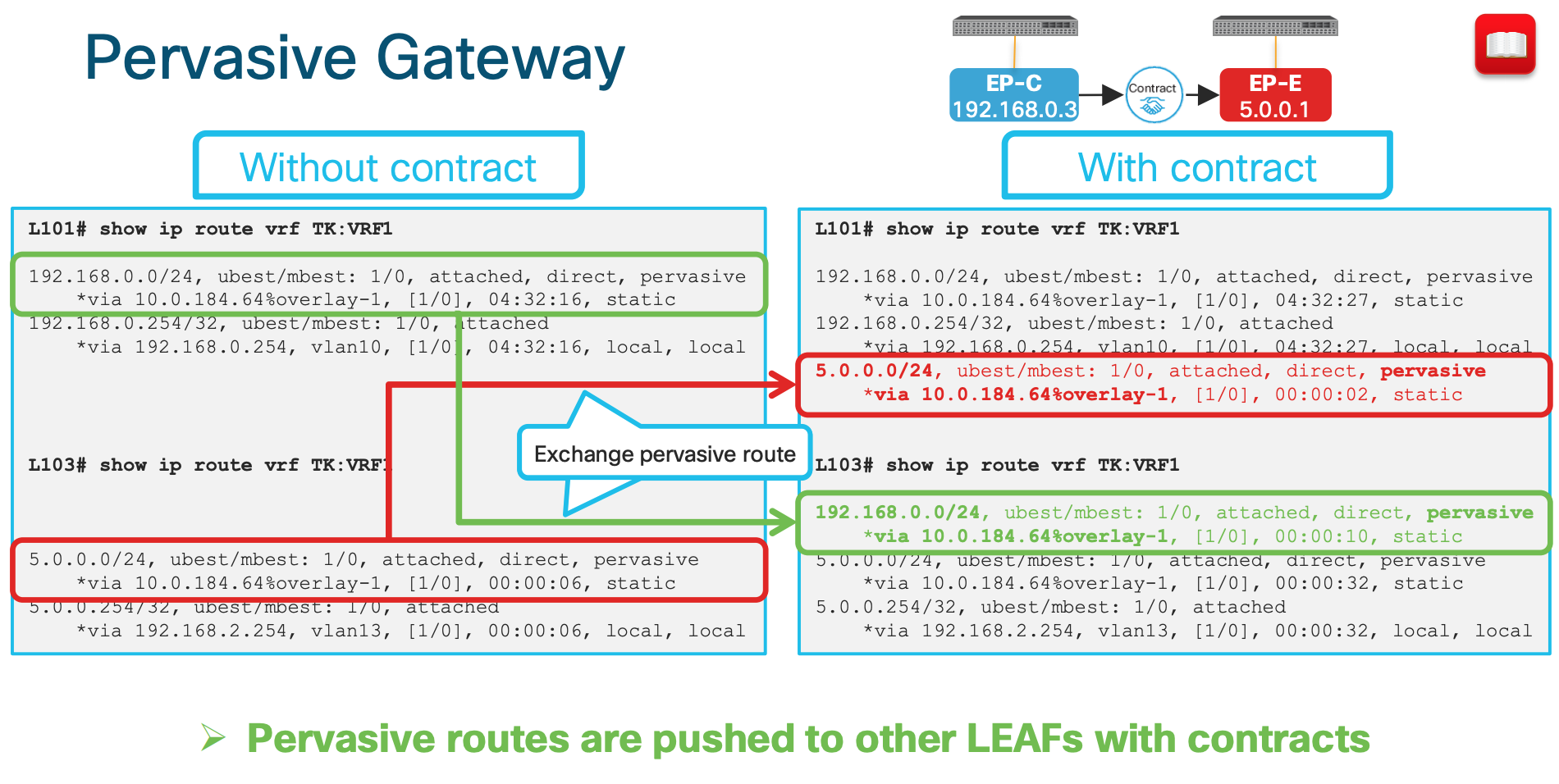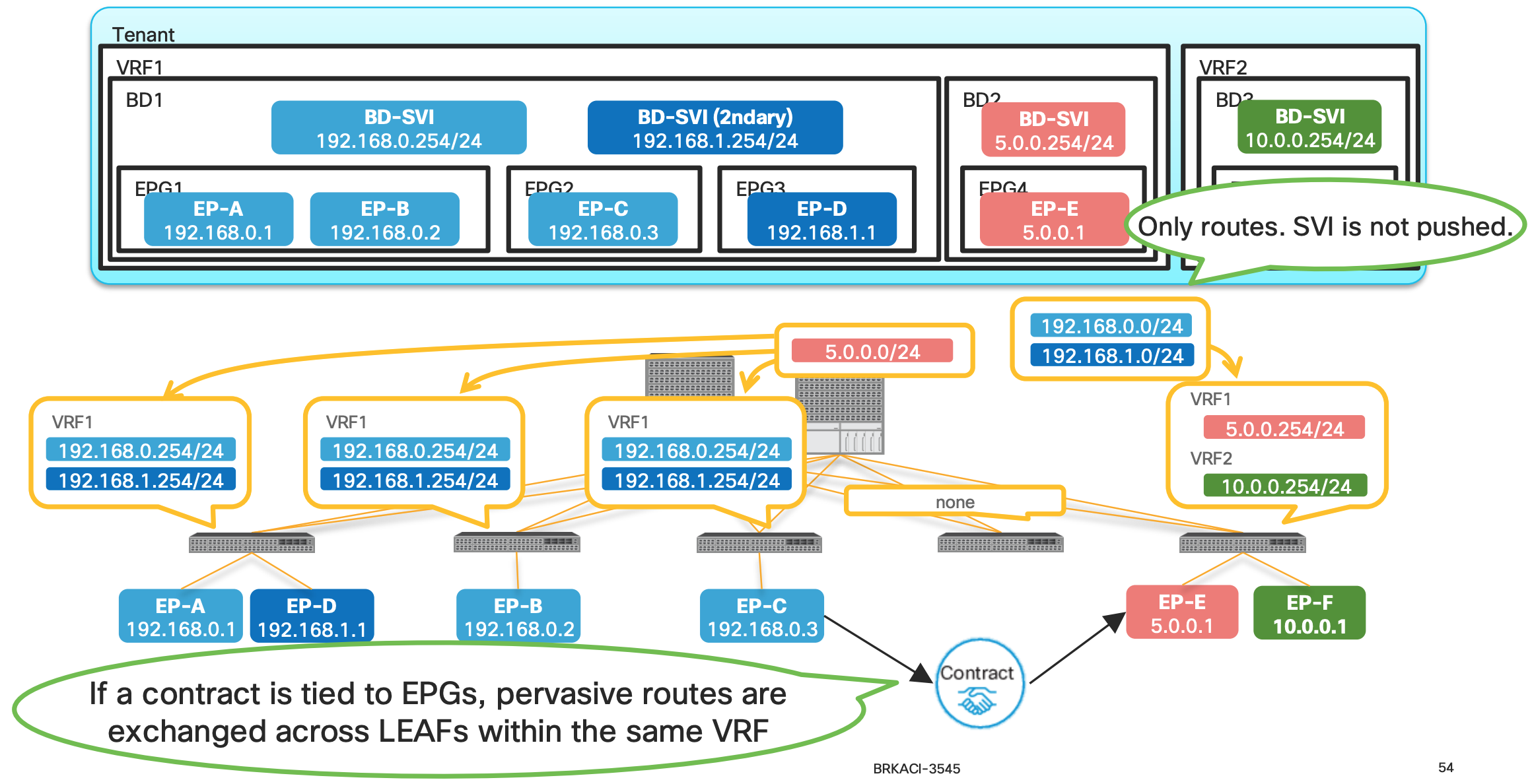 This is the key to understand how the ACI is doing Spine-Proxy Why does ACI push pervasive routes to other LEAFs after a contract? Pervasive routes are required for Spine-Proxy