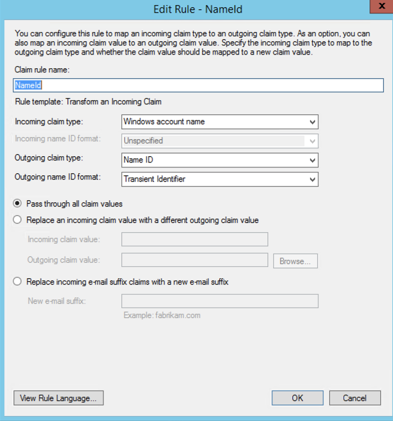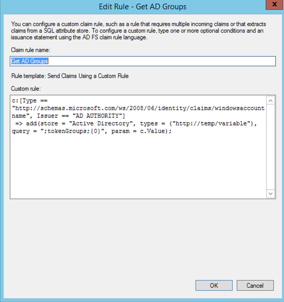 c:[Type == "http://schemas.microsoft.com/ws/2008/06/identity/claims/windowsaccountname", Issuer == "AD AUTHORITY"]