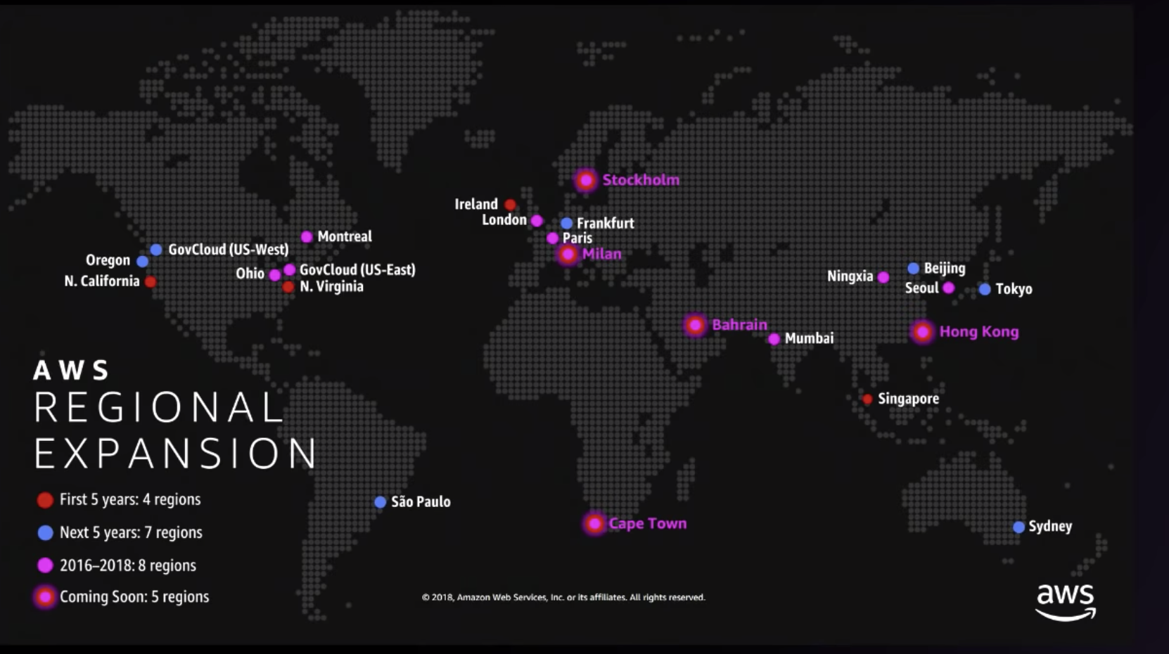 AWS has 19 Regions and 57 AZs within those 19 regions.