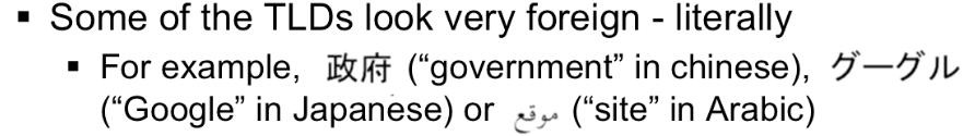 Look at the example below , it shows how .gove is writtent in chinese , Google in Japanese and site in Arabic .