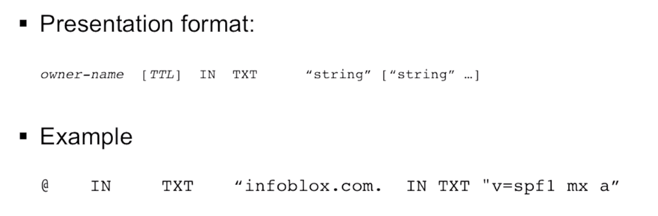The TXT, or text record, can be used to attach comments or almost anything else to domain names in the name space.